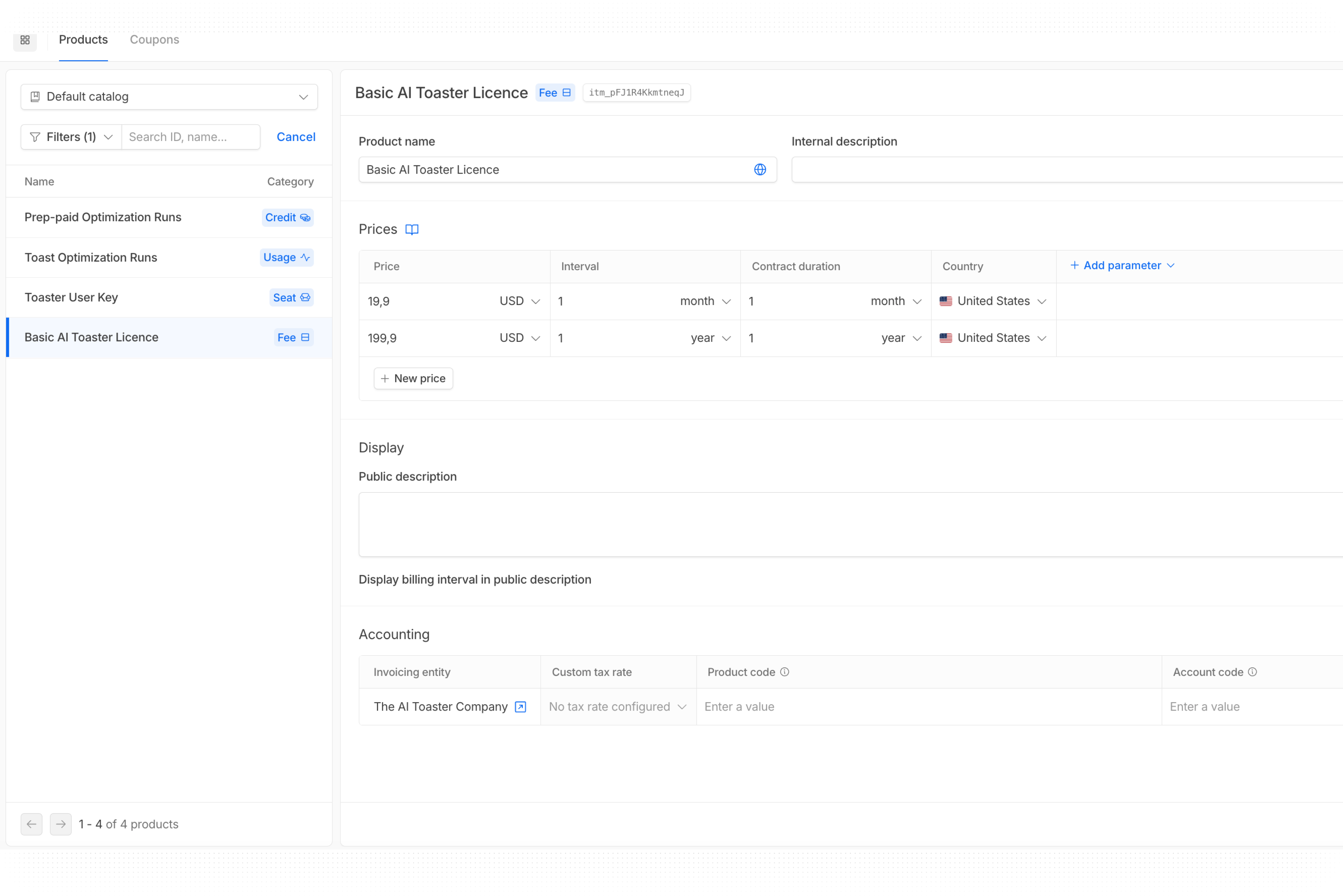 Support any go-to-market motion with four product types. Set pricing once, apply it everywhere, and stay audit-ready as you scale.